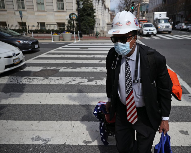 Robert Lee rảo bước qua Khu phố Penn thưa thớt bóng người của Quận Columbia, bang Washington, Mỹ.
