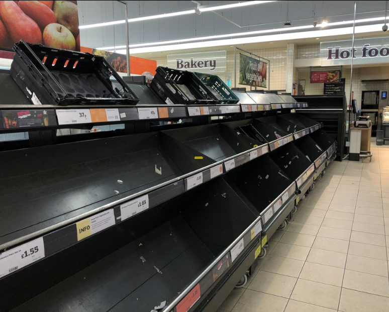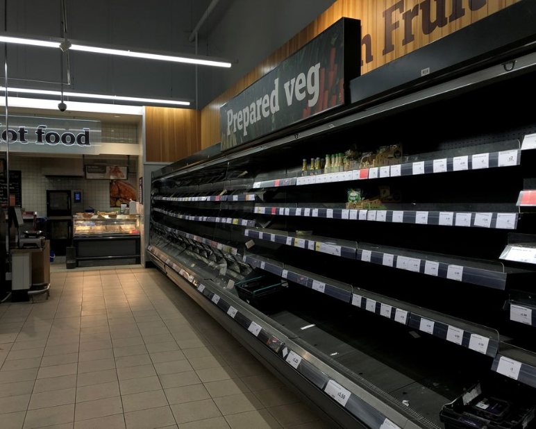 Cửa hàng của Sainsbury ở phía nam London (Anh) bị vét sạch sẽ, không sót lại món gì.