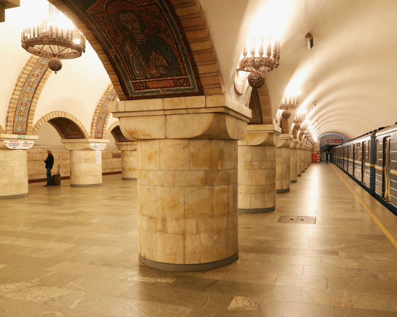 Một hành khách chờ chuyến tàu điện ngầm cuối cùng ở ga Zoloti Vorota tại thủ đô Kiev, Ukraina hôm 17/3, trước khi lệnh hạn chế di chuyển có hiệu lực.