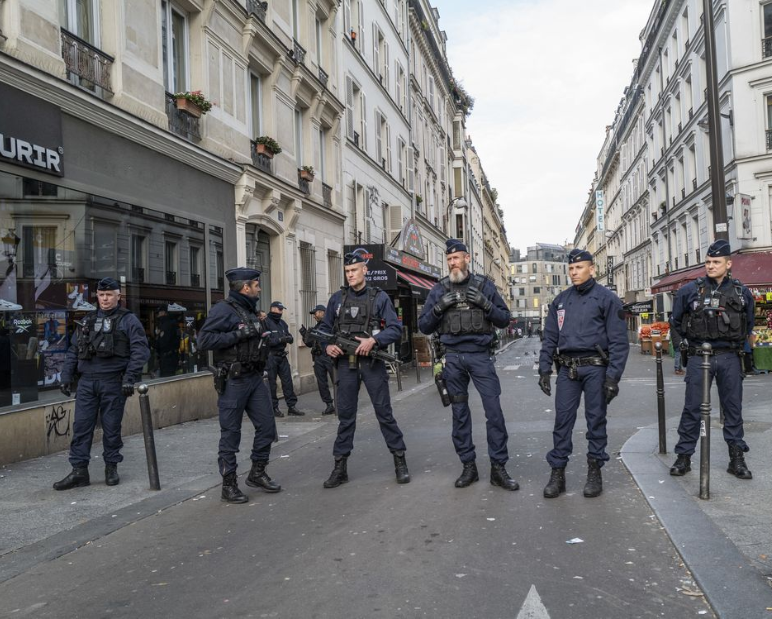 Cảnh sát Paris tuần tra trên phố sau khi chính phủ ban hành lệnh phong tỏa.