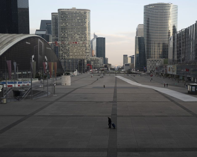Khu đô thị La Defense ở Paris (Pháp) gần như biến thành “thành phố ma” sau lệnh phong tỏa của chính phủ.