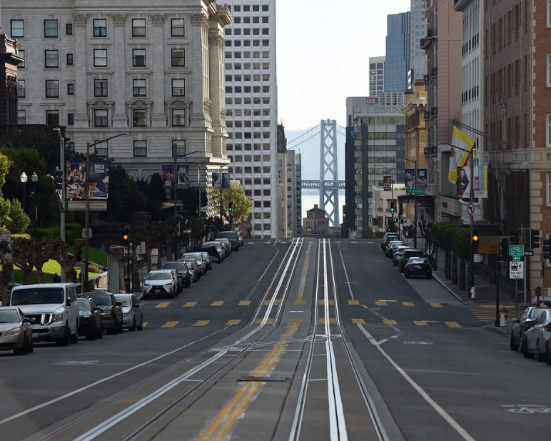 Đường phố San Francisco (Mỹ) lặng thinh khi hàng triệu cư dân thành phố được yêu cầu ở yên trong nhà để tránh lây lan COVID-19.