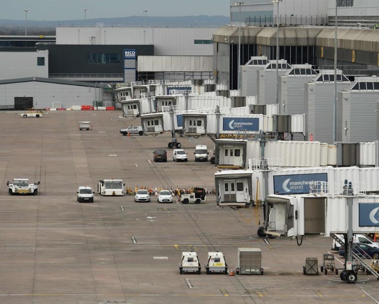 Bãi đỗ xe vắng ngắt tại Sân bay Manchester, phía tây bắc nước Anh hôm 17/3.