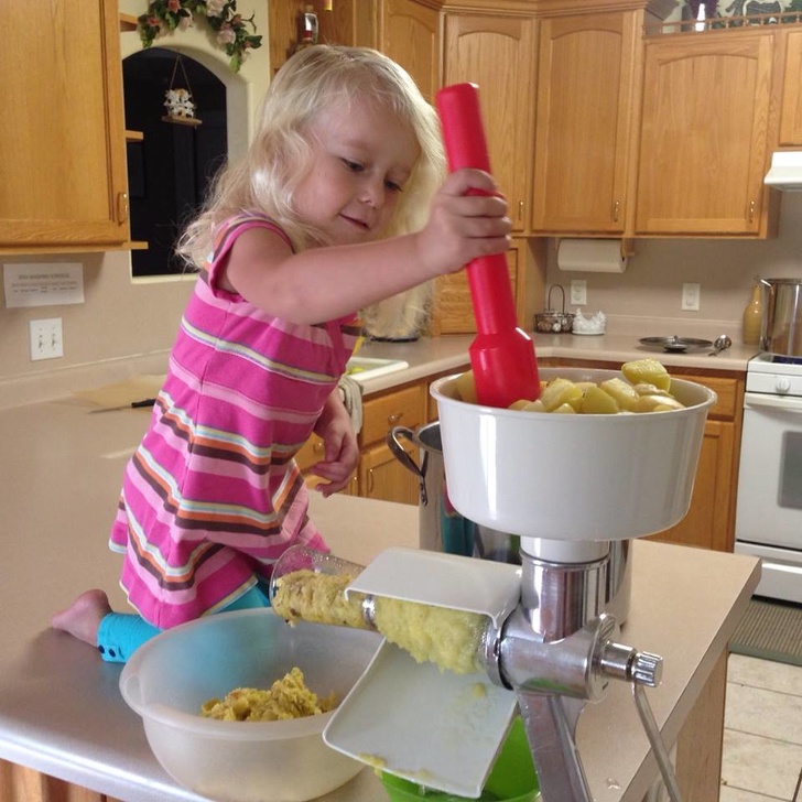 Cô nhóc này lại mê nấu ăn.
