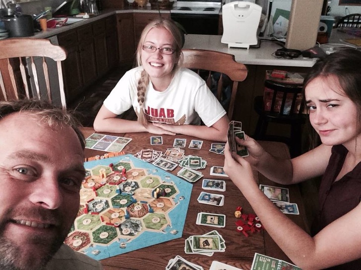 Cha cùng con gái chơi bài.