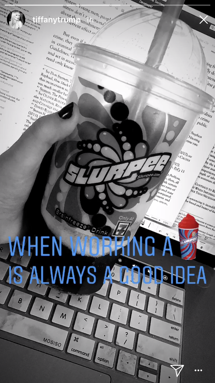 Trong khi chị gái cùng cha khác mẹ Ivanka Trump đang tăng tốc làm việc, lo cho sự nghiệp ở Nhà Trắng thì Tiffany lại có một cuộc sống đúng nghĩa như một người bình thường, nghỉ ngơi, thư giãn, học tập, và cũng uống Slurpee như bao người khác.