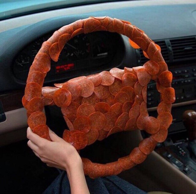 Một công đôi việc, vừa lái xe vừa ăn lót dạ.