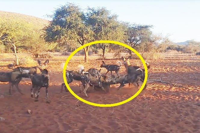 Clip đàn chó hoang cùng nhau xé xác lợn rừng. Nguồn: Kruger Sightings.