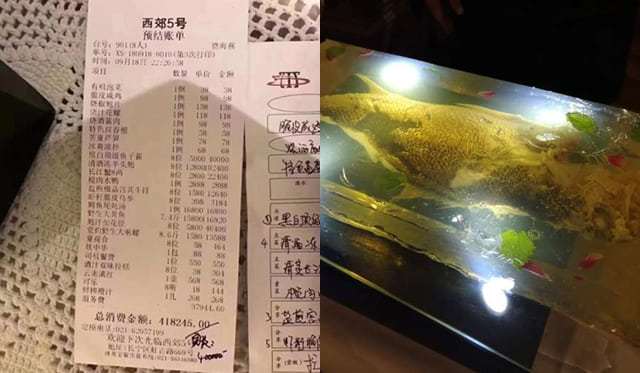 Bức ảnh tờ biên lai với tổng chi phí khổng lồ lên đến 418.245 tệ của một bữa tối gồm 20 món ăn dành cho 8 người. Nhiều cư dân mạng tự hỏi vì sao bữa ăn lại được chuẩn bị kỳ công đến thế và càng không hiểu vì sao những thực khách này lại có thể “đốt tiền” một cách vô tội vạ như thế.