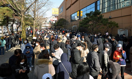 Giới chức thành phố Daegu ở phía đông nam Hàn Quốc hôm nay 24/2 thông báo bán khẩu trang y tế tại một chuỗi siêu thị, khiến người dân đổ xô đến mua hàng trong bối cảnh số ca nhiễm virus corona (COVID-19) tại Hàn Quốc tăng nhanh mấy ngày gần đây.