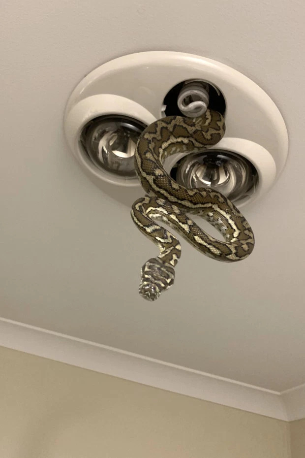 Anh rất ngạc nhiên vì con trăn lại cố gắng lách qua khe hở trên bóng đèn chùm, bởi dù ẩn nấp suốt trên mái nhà của tận 1/3 người dân Úc, song loài trăn rắn không mấy hứng thú với việc lẻn vào nhà con người theo cách kỳ quặc đó.
