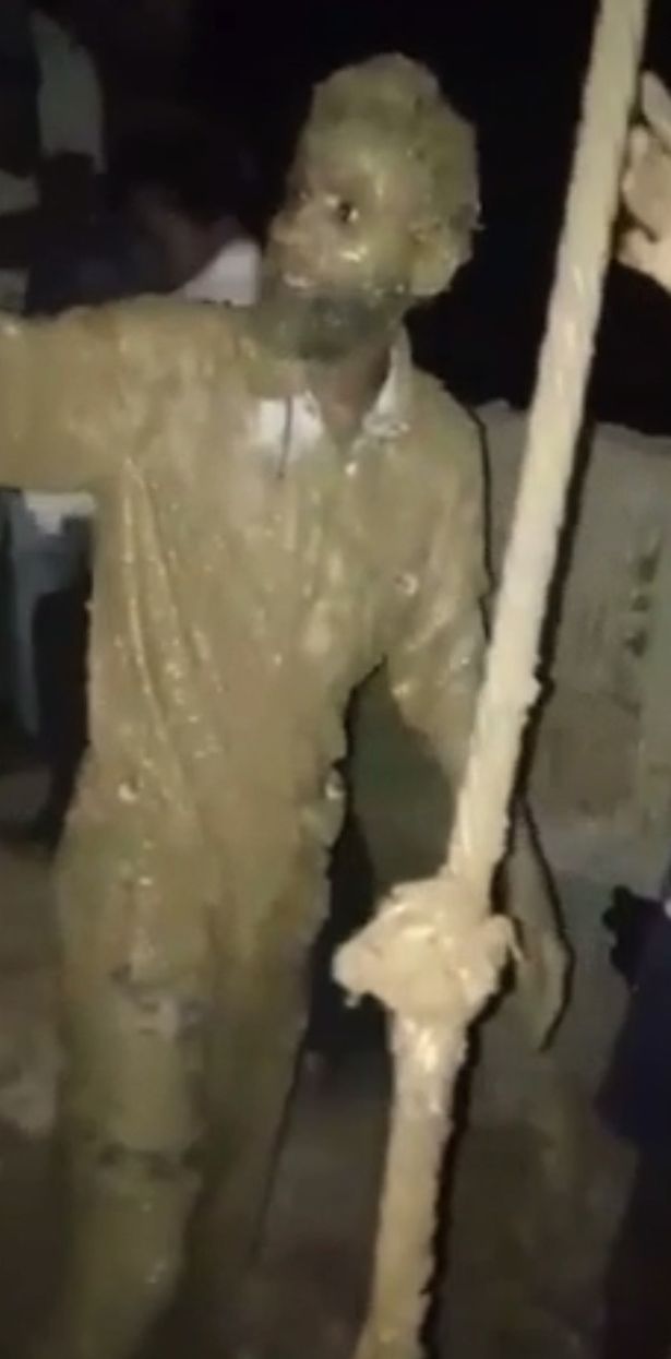 Khi được giải cứu khỏi hố bùn sâu, người đàn ông 40 tuổi đã vô cùng xúc động và hôn chân những người đã giúp mình để tỏ lòng biết ơn.