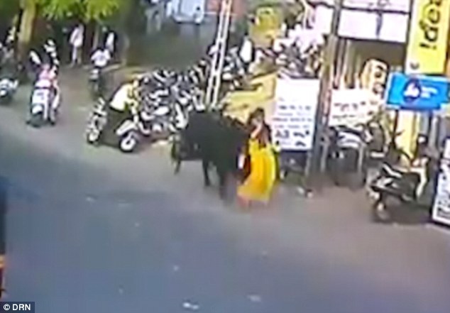 Video cho thấy con bò chậm rãi đi ngang qua xe hơi, xe tuk-tuk sau đó điên cuồng lao về phía trước, đâm người đàn ông điều khiển xe ga rồi húc vào người phụ nữ mặc đồ màu vàng và nâu. Các nhân chứng sốc khi cứng kiến cảnh tượng người phụ nữ bị hất lên không trung rồi rơi xuống đất.