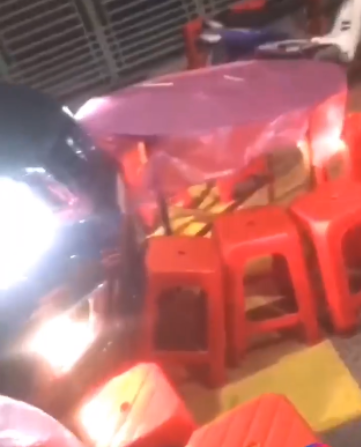 Nam tài xế tức tối lái xe tông thẳng vào bàn tiệc.