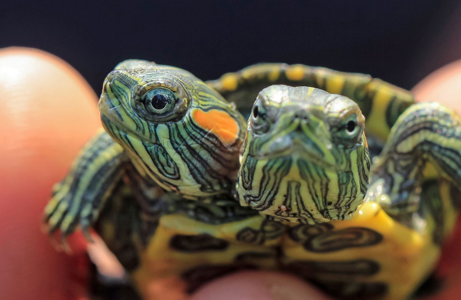 Một con rùa quý hiếm đã gây sốc cho chủ nhân của nó khi được sinh ra với 2 đầu vào năm 2016. Jeo Armansary cho biết vào thời điểm đó, anh vẫn mong muốn mình sống một cuộc sống bình thường với con rùa tai đỏ - con vật có thể sống tới 40 năm. Nhiếp ảnh gia Tanto Yensen, 36 tuổi, cho biết thật tuyệt vời khi thấy một hiện tượng như vậy. Ông Yensen, ở Jakarta, Indonesia, cho biết thêm: “Đây là một con rùa tai đỏ và nó được coi là thú cưng. Bạn tôi nhận loài bò sát này từ một nhà lai tạo. Nó được sinh ra với 2 đầu nhưng rất khỏe mạnh và bạn tôi coi nó như một đứa trẻ”.