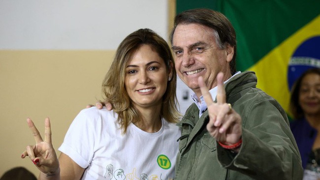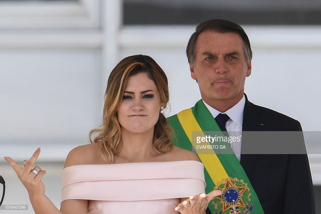 Bên cạnh đó Đệ nhất phu nhân mới của Brazil, bà Michelle Bolsonaro thu hút ống kính truyền thông nhờ vẻ đẹp rạng rỡ cùng gu ăn mặc tinh tế. Đặc biệt, mối tình giữa bà với người chồng cách nhau 25 tuổi đã trở thành đề tài thu hút dư luận.
