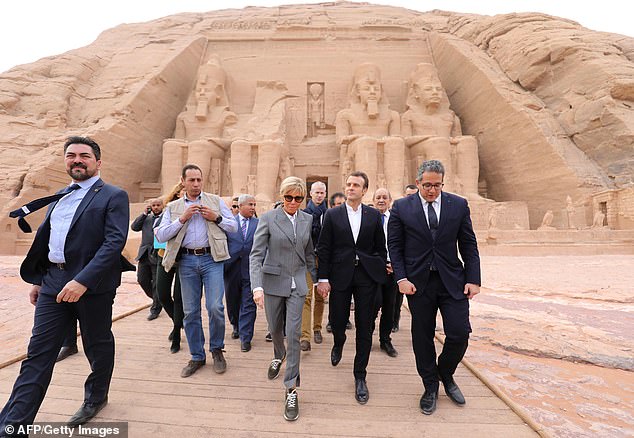 Đệ nhất phu nhân Pháp xuất hiện bên cạnh chồng, Tổng thống Macron, trong chuyến thăm đền Abu Simbel.