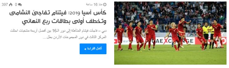 Tờ Alghad đưa tin: “Việt Nam gây choáng váng khi giành tấm vé bước vào vòng tứ kết“. Trong bài trang này viết: “Việt Nam gây bất ngờ khi trở thành đội tuyển đầu tiên đoạt vé vào vòng tứ kết. Tuy bị đánh giá là yếu thế hơn nhưng Việt Nam vẫn chiến thắng và đây là một tiền lệ trong làng bóng đá. Việt Nam một lần nữa đã làm được những gì mà họ từng làm vào năm 2007, khi đất nước này đồng tổ chức ASIAN Cup“.