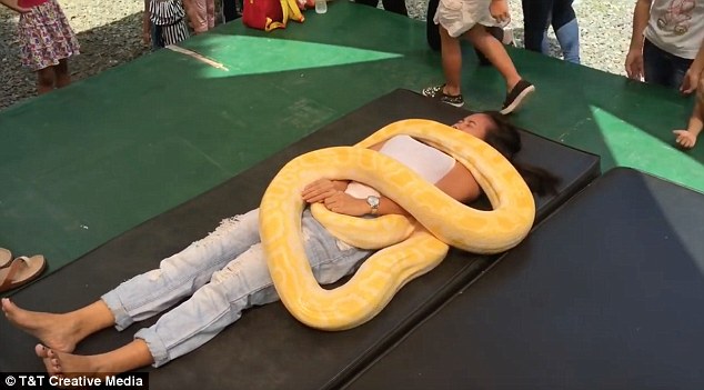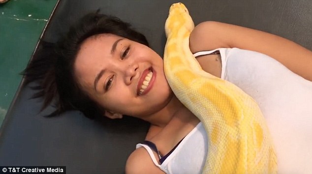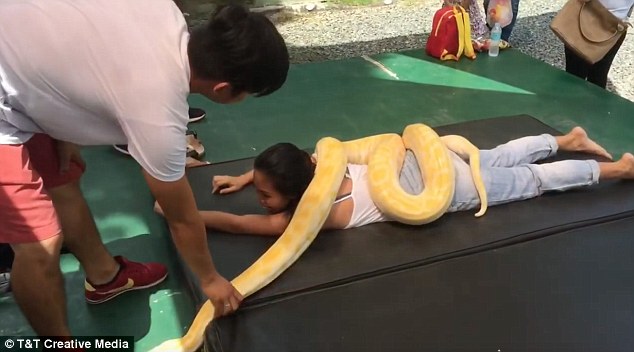 Những người đủ can đảm sẽ tận hưởng cảm giác tuyệt vời khi được một con trăn nặng 50 kg mát-xa cho họ.