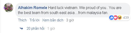 “Thật không may cho đội tuyển Việt Nam. Chúng tôi tự hào về các bạn. Các bạn là đội bóng tốt nhất của Đông Nam Á”, một CĐV khác tới từ Malaysia chia sẻ.