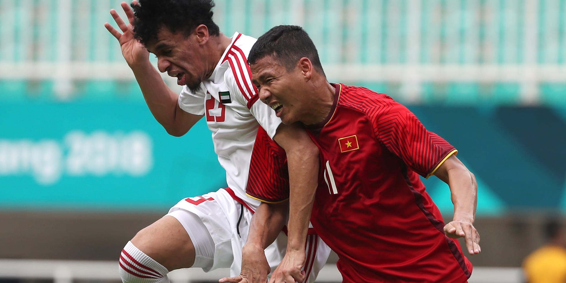 Trận đấu tranh HCĐ bóng đá nam ASIAD 18 giữa đội tuyển Olympic Việt Nam và UAE (Các Tiểu vương quốc Ả rập Thống nhất) kết thúc với chiến thắng chung cuộc thuộc về đội bóng Tây Á.