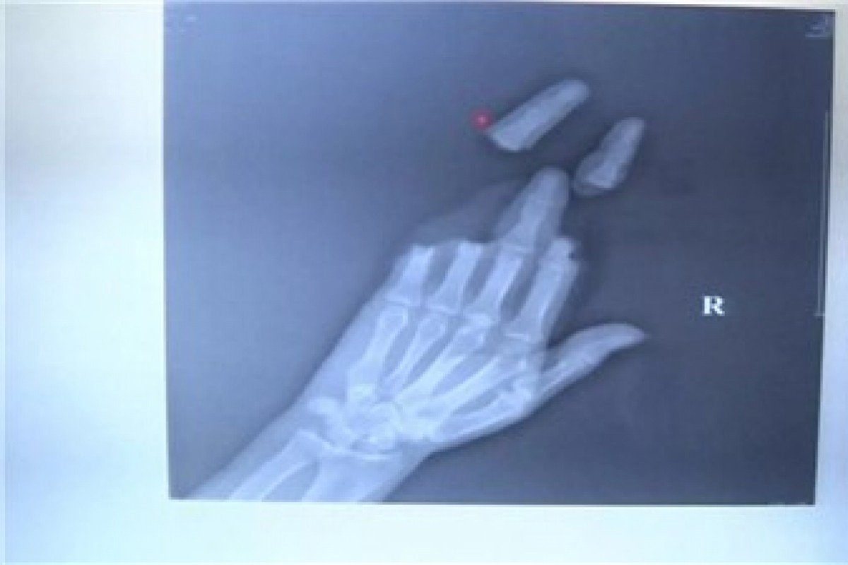 Ảnh chụp X-quang 3 ngón tay bị dây diều cắt đứt.