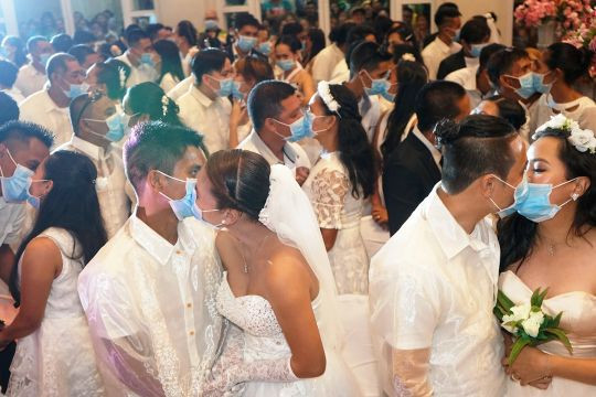 220 cặp đôi và người thân của họ bất chấp dịch viêm phổi do virus corona đang hoành hành đã tham dự lễ cưới tập thể diễn ra tại thành phố Bacolod, Philippines hôm 20/2.