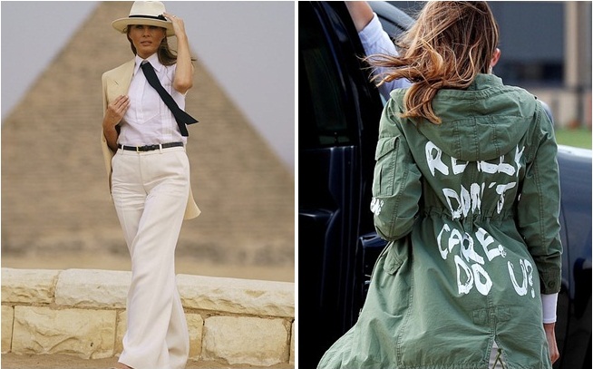Bà Melina được ví là biểu tượng thời trang của nước Mỹ trong suốt khoảng thời gian ở Nhà Trắng. Trong chuyến đi một mình qua châu Phi vào mùa hè năm ngoái, bà Melania mặc trang phục phong cách safari (miền đất mới) sang trọng. Gần đây,trong chuyến thăm 4 ngày tới Nhật Bản, bà diện bộ trang phục giá 20.000 USD. Tuy nhiên, bà Trump cũng có đôi lần gây tranh cãi vì trang phục. Trong lần tới thăm trung tâm tạm trú cho trẻ em của các gia đình nhập cư trái phép ở khu vực gần biên giới Mexico, Đệ nhất phu nhân Mỹ mặc áo khoác kaki màu xanh lá cây của thương hiệu Zara với dòng chữ “Tôi thực sự không quan tâm, còn bạn thì sao”. Một số người chỉ trích thông điệp trên chiếc áo trái ngược với chiến dịch mà bà Melania vận động, song bà Trump phản bác đó đơn giản chỉ là một chiếc áo khoác.