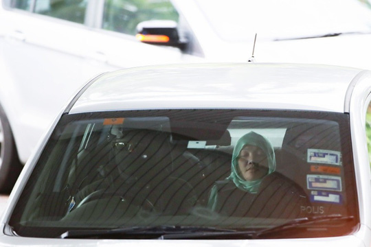 Đoàn Thị Hương được nhìn thấy lên xe rời khỏi phiên tòa sáng 1-4. Ảnh: EPA