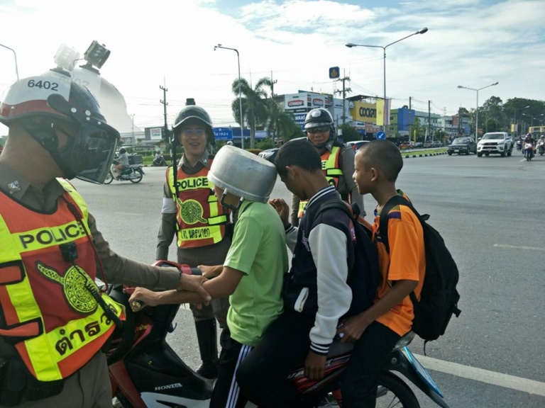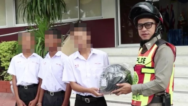 Theo tờ báo địa phương Thairath, 3 nam sinh đã được gọi tới đồn cảnh sát. Các sĩ quan tặng các em 3 chiếc mũ bảo hiểm.