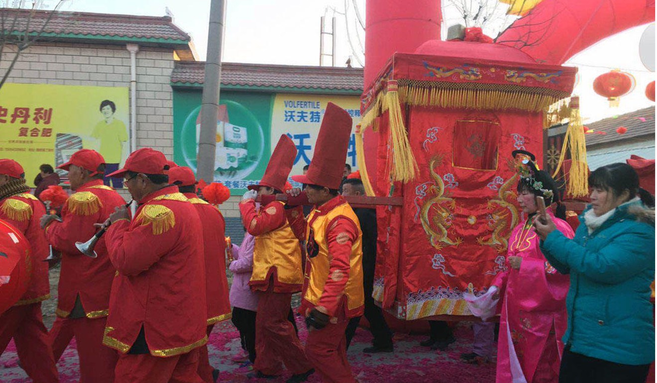 Theo QQ, cô dâu sống ở thành phố Tân Châu, cách nhà chú rể khoảng 170 km. Sau khoảng một giờ bay, chú rể xuất hiện tại nhà gái. Cô dâu cũng ngồi kiệu hoa và được gia đình, bạn bè tiễn ra tới chỗ đón dâu.