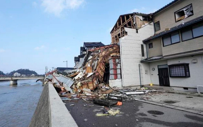 Trận động đất đã khiến những mái nhà sập đổ, nằm trơ trọi trên đường và mọi thứ bên dưới bị vỡ nát. Đường bị nứt vỡ, cong vênh như cao su. Một trận hỏa hoạn đã biến cả một khu phố ở thành phố Wajima thành tro bụi.