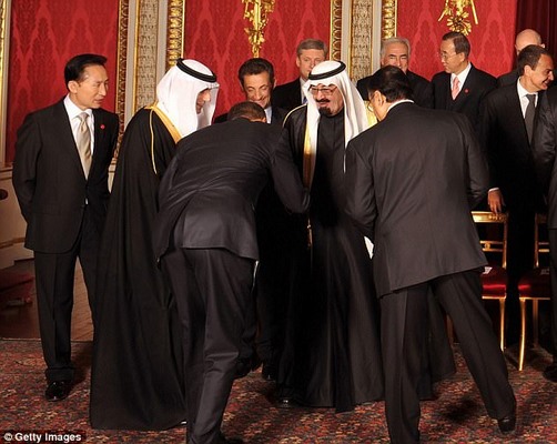 Ông Obama cúi đầu khi gặp vua Ả Rập Saudi.