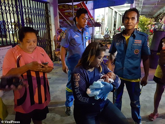 Ngay sau khi nhận được tin báo, cảnh sát và các nhân viên y tế đã tới cửa tiệm của bà Sangduen. Các nhân viên y tế cho biết, tuy bé trai vẫn còn nguyên dây rốn nhưng em bé có thể đã được 5 ngày tuổi. Bé trai hoàn toàn khỏe mạnh nhưng rất đói.