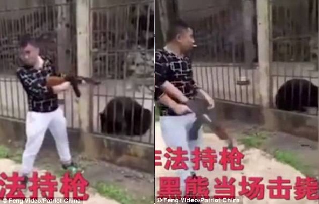Cảnh quay một người đàn ông dùng súng AK bắn con gấu trong lồng nhốt đang được chia sẻ tại Trung Quốc, gây phẫn nộ cho cộng đồng mạng nước này. Theo Daily Mail, sự việc xảy ra ở Wa State - Myanmar, giáp biên giới Trung Quốc.