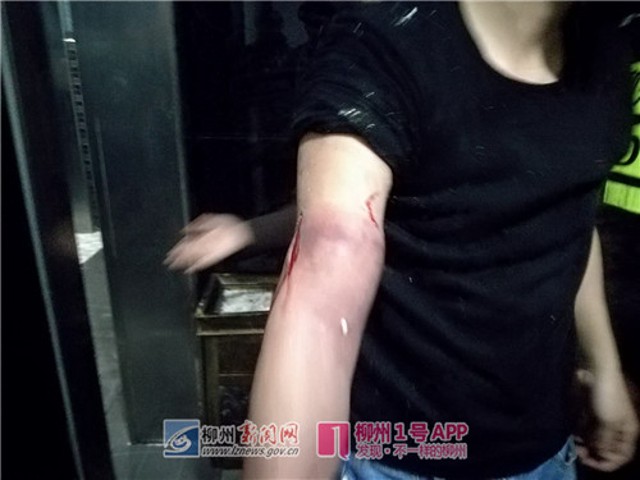 Cánh tay người đàn ông bị chảy máu sau hành động trên.