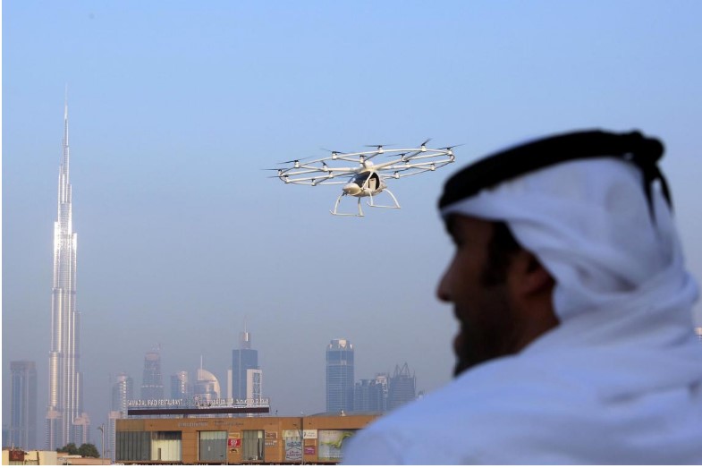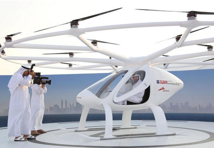 Chiếc taxi bay được chế tạo bởi công ty Volocopter (Đức), nó trông giống như một cabin máy bay trực thăng nhỏ, hai chỗ ngồi với vành rộng trên đầu gắn 18 cánh quạt. Cuộc thử nghiệm 25/9 có sự tham dự của Thái tử Sheikh Hamdan bin Mohammed của Các tiểu vương quốc Ả rập thống nhất.
