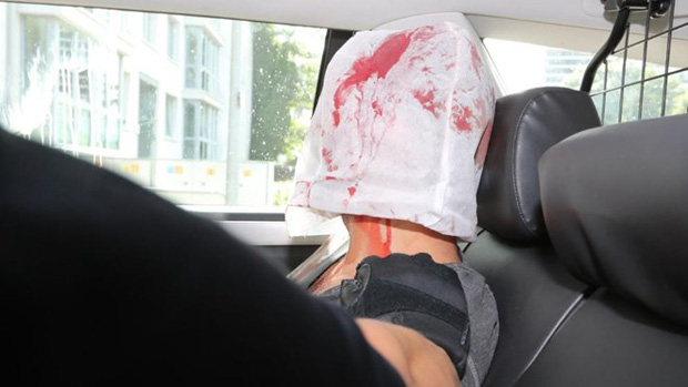 Trang chủ của tờ Bild đăng tấm ảnh một người đàn ông trùm đầu bằng túi trắng vấy máu ngồi trong xe cảnh sát và chú thích rằng đó là hung thủ.