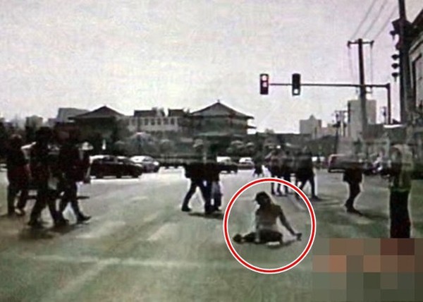 Cô gái giả vờ ngã ra đất để thu hút sự chú ý của chàng cảnh sát giao thông.