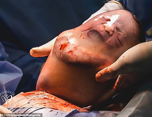 Ban đầu, em bé dường như vẫn đang trong giấc ngủ say khi bác sĩ lấy túi ối ra ngoài. Sau đó, bé đã cất tiếng khóc vì bị đánh thức. Tuy nhiên, một lúc sau thì bé lại chu môi như thế muốn hôn mẹ rồi thè lưỡi như muốn trêu chọc mọi người xung quanh.