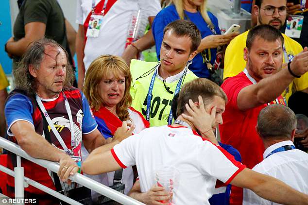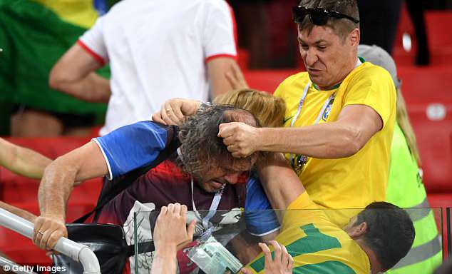 Việc CĐV Brazil và Serbia lao vào đánh nhau là vụ ẩu đả đầu tiên ngay trên khán đài trong mùa World Cup 2018. Không biết chuyện gì đã xảy ra khiến CĐV Brazil và Serbia hăng máu, lao vào giật tóc, đấm đá túi bụi buộc lực lượng an ninh phải can ngăn.