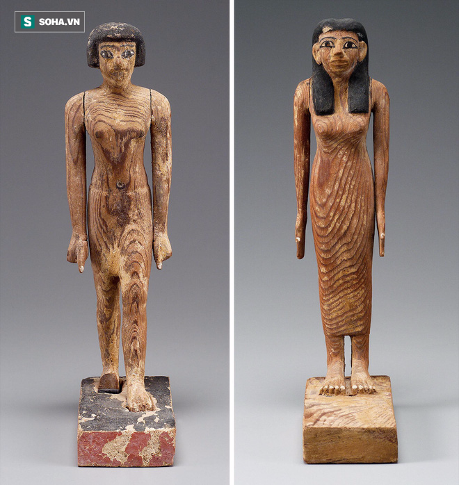 Hai bức tượng nhỏ của lãnh chúa Djehutynakht (trái) và vợ của ông (phải). Ảnh: Museum of Fine Arts, Boston