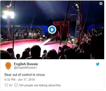 Anastasia Mishcherina, một người dân địa phương, nói: “Một vài người thân của tôi có đến xem buổi biểu diễn và ngồi ngay hàng ghế đầu tiên. Khi đến màn trình diễn của những chú gấu, họ muốn quay lại video và đã tiến đến gần cửa ra vào”.