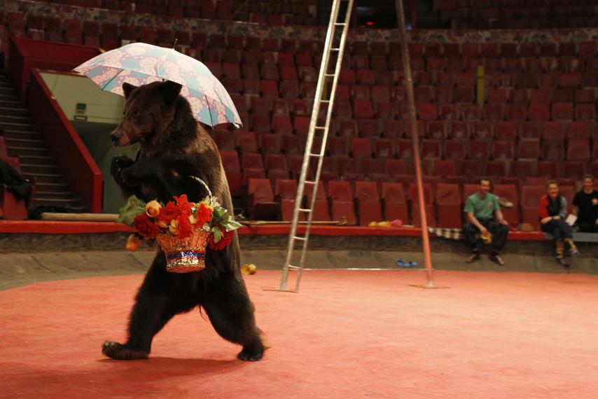 Vụ việc xảy ra vào cuối tuần trước tại một rạp xiếc trong ngôi làng Olkhovka, thuộc vùng Volgograd, Nga. Chú gấu Masha, 11 tuổi, bất ngờ tấn công người chỉ huy của mình, đẩy ngã một nhân viên trong rạp sau khi bị quất vào người và ép bắt biểu diễn trên ván trượt.
