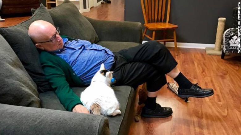 Ông Terry Laurmen, 75 tuổi, đến từ Mỹ, là một người rất yêu mèo. Ảnh: CNN