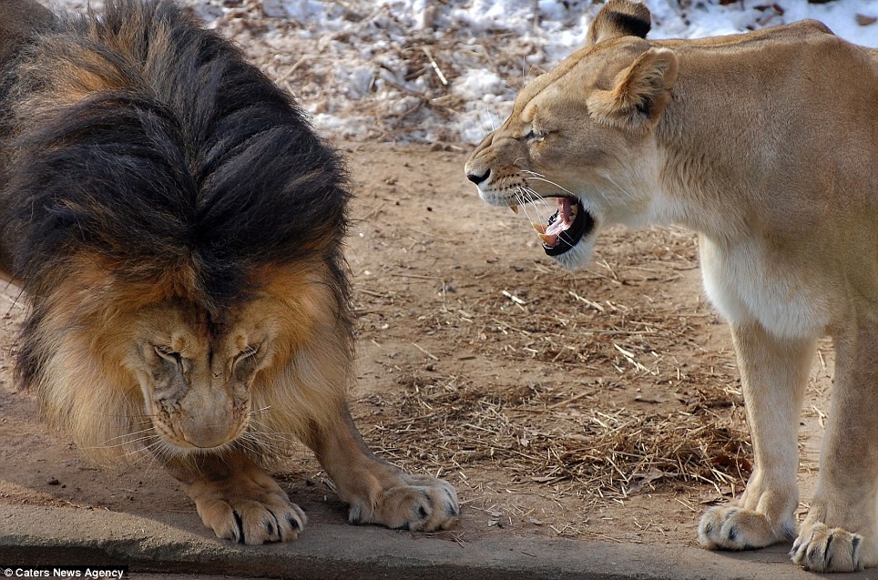 Nhìn hình ảnh có một không hai trên, người ta càng thấy rõ chân lý “sợ gì mà không sợ vợ” chưa bao giờ là sai, kể cả với chúa tể rừng xanh. Oai phong lẫm liệt trước muôn loài là thế nhưng lúc nào có vợ thì phải biết nhún nhường, để vợ là nhất.