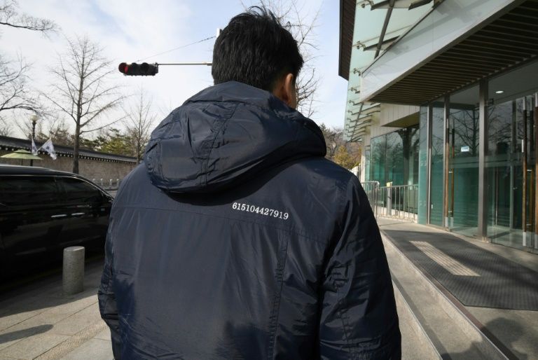 Dãy số đặc biệt được thêu sau áo khoác của nhân viên an ninh Hàn Quốc. Ảnh: AFP