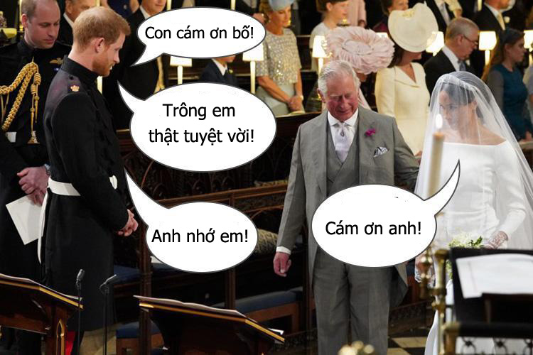 Hóa giải những điều này, chuyên gia khẩu hình người Anh Tina Lannin đã giải mã những cuộc hội thoại trong đám cưới Hoàng gia Anh. Khi thấy Meghan tiến vào nhà thờ, mặc dù ngỡ ngàng trước vẻ đẹp kiều diễm của Meghan và pha một chút hồi hộp, Hoàng tử Harry vẫn không quên nói lời cảm ơn với người cha thân yêu của mình, Hoàng tử Charles.