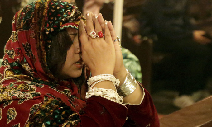 Một cô gái đang làm lễ ở nhà thờ tại thành phố Lahore của Pakistan hôm 24/12. Ảnh: AP