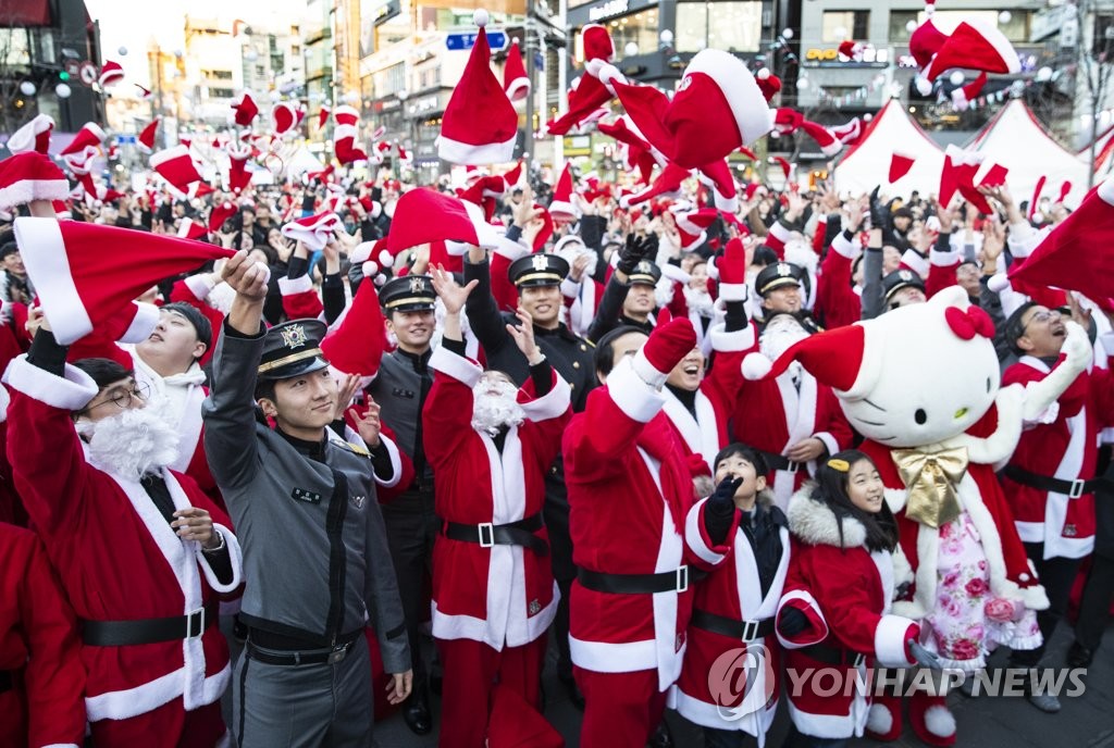 Rất đông người ở thủ đô Seoul, Hàn Quốc tham gia buổi lễ chào đón Giáng sinh hôm 24/12, khởi động sự kiện từ thiện trao quà cuối năm cho những người nghèo. Ảnh: Yonhap